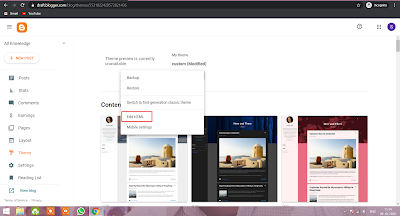 अब आपको Edit html पर क्लिक करना है जैसे आप इस पर क्लिक करेंगे आपके Theme का html Open हो जाएगा