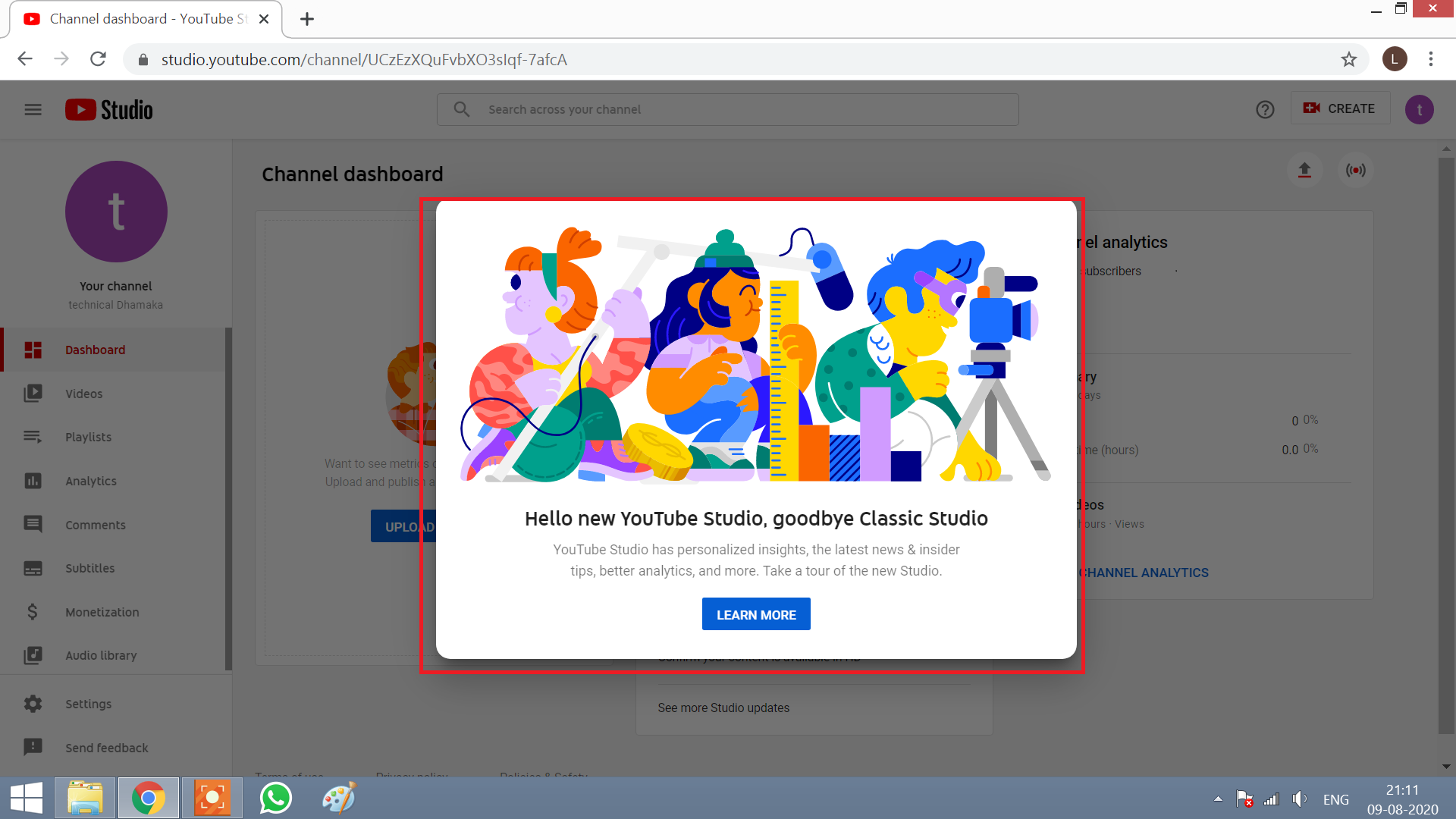 अब आप एक फाइनली यूट्यूब चैनल बना लिए हैं अब बारी है आपको अपना यूट्यूब चैनल वेरीफाई करने को तो चैनल को वेरीफाई करने के लिए आप आगे का स्टेप फॉलो करें अब आपको नंबर 1 GOT IT पर क्लिक करना है उसके बाद YouTube Studio पर क्लिक करना है